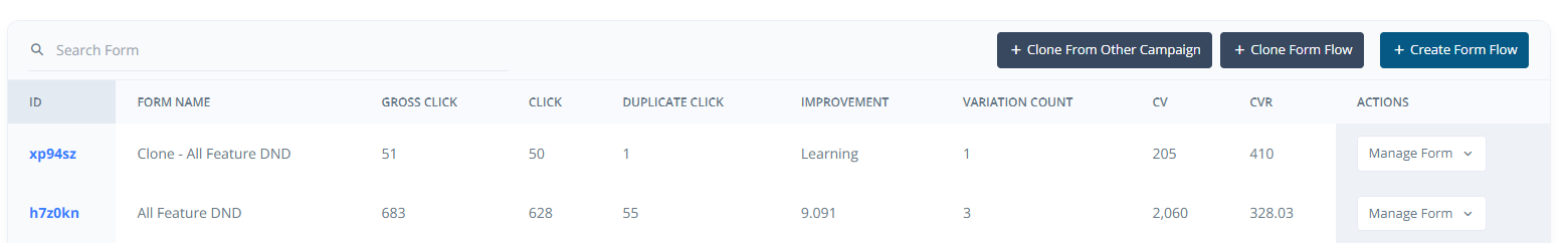Quickly replicate an existing form flow using the Clone Form option.This is ideal for: