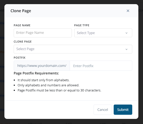 - Add a Postfix to differentiate the cloned page, following naming conventions.